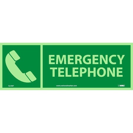NMC GL306P Fire Sign, Legend "EMERGENCY TELEPHONE" with Graphic, 14" Length x 5" Height, Glow Polyester, Yellow on Green
