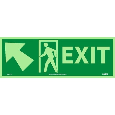 NMC GL311R EXIT Sign – 14 in. x 5 in. 6 Hour Glow Rigid Plastic Safety Sign with Yellow on Glow Green, Person Walking Through Doorway, Left Arrow Graphic