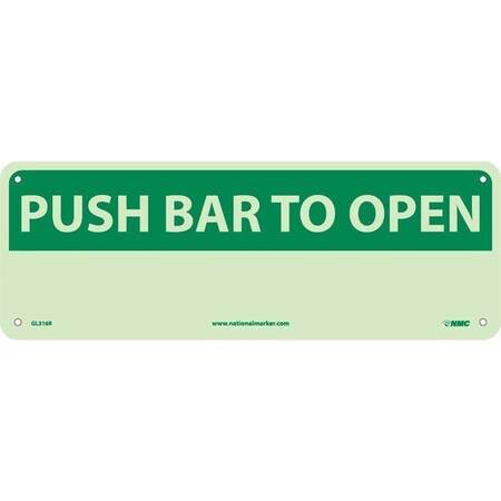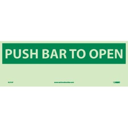 NMC GL316P Fire Sign, Legend "PUSH BAR TO OPEN", 14" Length x 5" Height, Glow Polyester, Yellow on Green