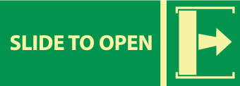 NMC GL319P Fire Sign, Legend "SLIDE TO OPEN" with Right Arrow Graphic, 14" Length x 5" Height, Glow Polyester, Yellow on Green