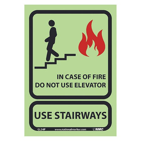 NMC GL34P In case of fire do not use elevators, use stairways Sign - 7 in. x 10 in. 6 Hour Glow Polyester Fire Safety Sign with Red/Black on Yellow