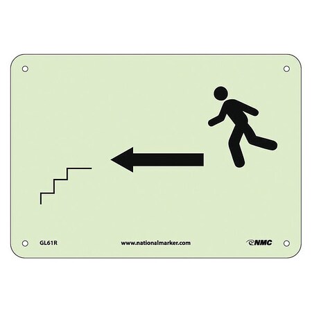 NMC GL61R Fire Sign, Stairs Left Arrow Man Graphic, 10" Length x 7" Height, Glow Rigid, Black on White