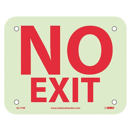 NMC GL779R, 4" x5" 6 Hour Glow Rigid Plastic "No Exit" Sign (Pack of 50 pcs)
