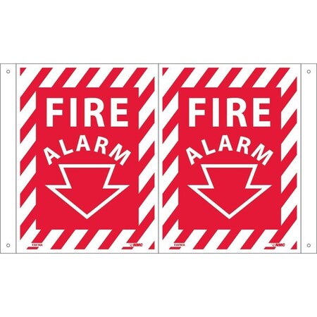 NMC GLTV18 Fire Sign, Legend "FIRE ALARM" with Down Arrow Graphic, 9" Length x 12" Height, Glow Rigid, Red on White