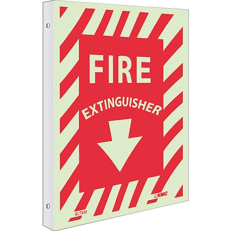NMC GLTV20 FIRE EXTINGUISHER Sign – 9 in. x 12 in. Glow Plastic Fire Safety Sign with Down Arrow Graphic, Red on Glow Yellow,White