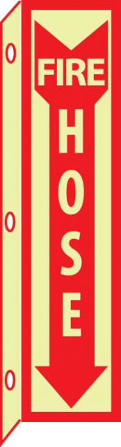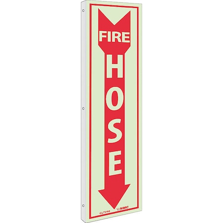 NMC GLTV46 Flange Sign, Legend "FIRE HOSE" with Down Arrow Graphic, 4" Length x 18" Height, Glow Rigid, Glow, Red on White
