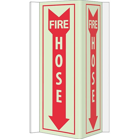 NMC GLV45 Visi Sign, Legend "FIRE HOSE" with Down Arrow Graphic, 9" Length x 16" Height, PVC, Red on Pale Light Green