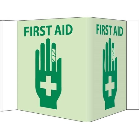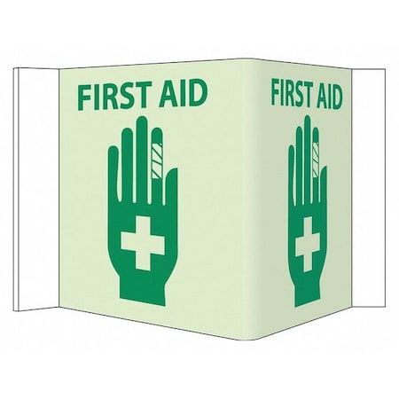 NMC GLV54 FIRST AID Sign - 9 in. x 6 in. Glow Rigid First Aid Equipment Signs with Graphic, Green On White