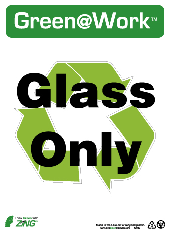 NMC - National Marker Company GLASS ONLY, 14x10, RECYCLE PLASTIC Green @ Work Green @ Work signs are made from high quality, post consumer recycled plastic. Use these recycled plastic signs to promote green thinking and good house keeping in your facility or office.