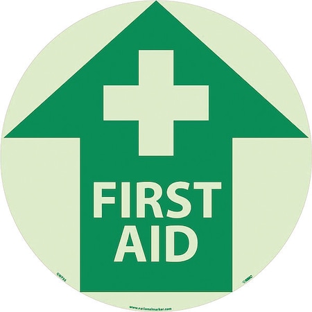 NMC National Marker GWFS6 First Aid Glow Walk on Floor Sign