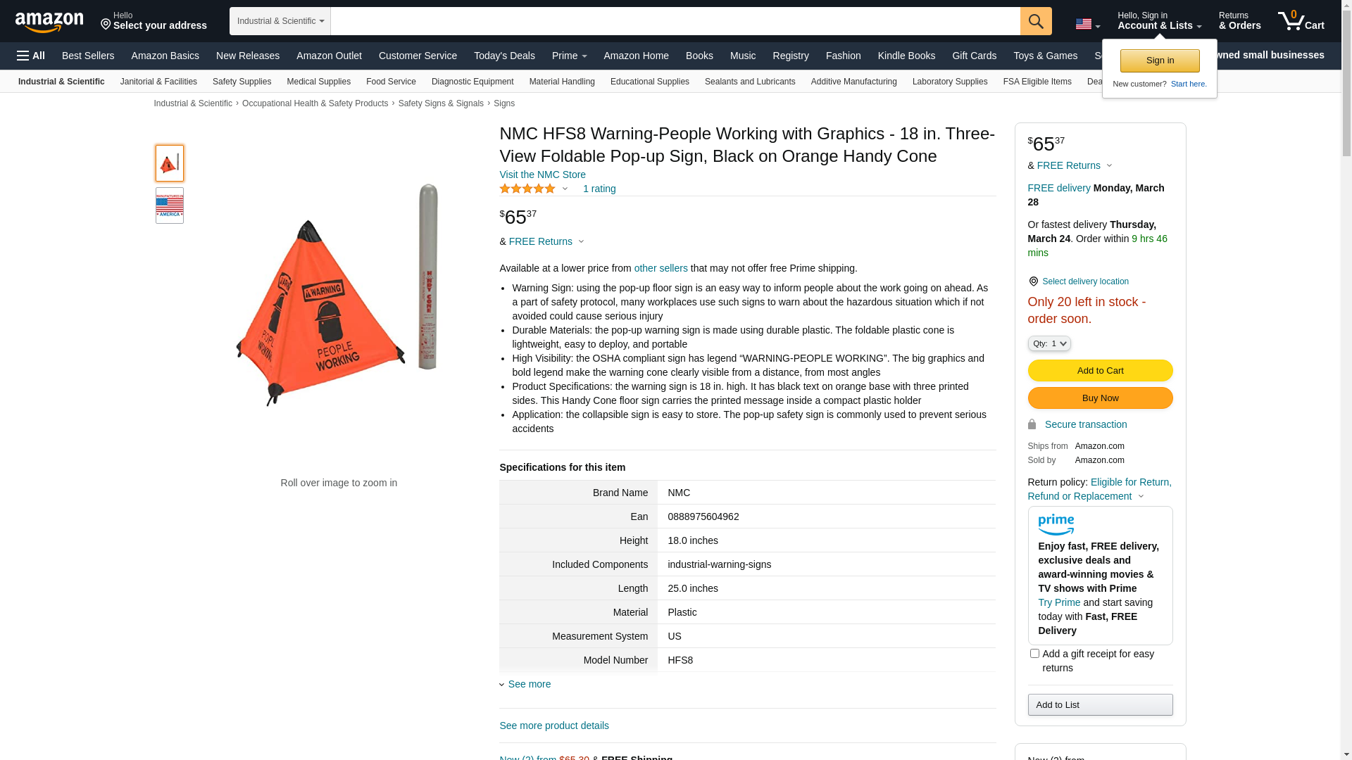 NMC Floor Sign "Warning People Working" HFS8. ✅NMC authorized distributor ✅. ☎ (800) 884-5767 Mon-Fri 8:00 AM - 5:00 PM ET or order online 24/7