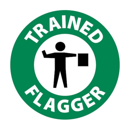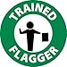 HH112-TRAINED FLAGGER, GRAPHIC, 2" DIA, PS VINYL, 25/PK