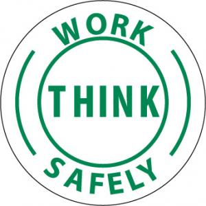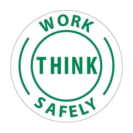 NMC HH12 Hard Had Emblem Sign, "WORK THINK SAFELY", 2" Diameter x 2" Height, Pressure Sensitive Vinyl, Green on White (Pack of 25)