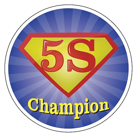 Hard Hat Emblem, 5S Champion,2 Dia, Ps Vinyl, 25/Pk