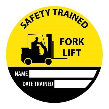Hard Hat Emblem, Safety Trained Fork Lift Name Date Trained, 2" Dia, Ps Vinyl