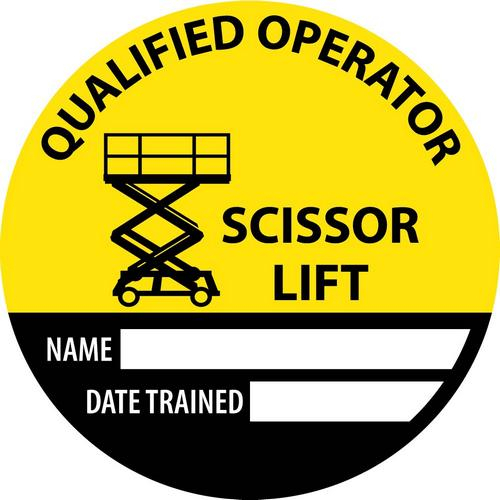 Hard Hat Label, Safety Trained Scissor Lift Name Date Trained, 2" Dia, Reflective Ps Vinyl, 25/Pk