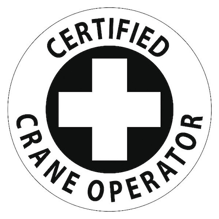 Hard Hat Label,Certified Crane Operator, 2"Dia. Reflective Ps Vinyl, 25/Pk