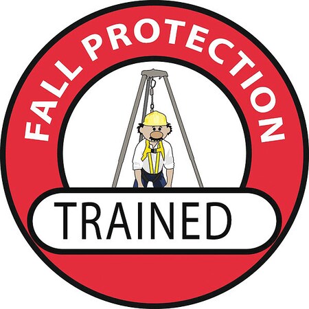 Fall Protection Trained Hard Hat Label, Pk25, Color: Black, White