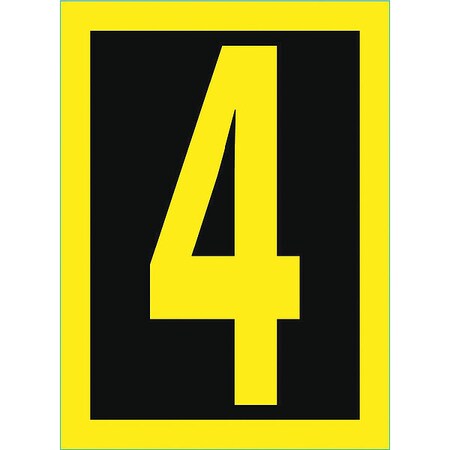 NMC National Marker Corp. HIN154 Number, 4, 1.5 Inch High Visibility Yellow Black, PS Vinyl