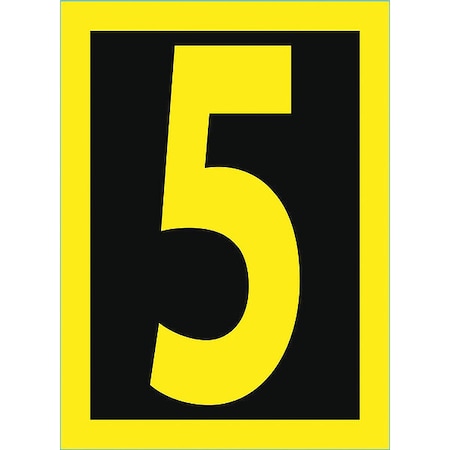 NMC National Marker Corp. HIN155 Number, 5, 1.5 Inch High Visibility Yellow Black, PS Vinyl