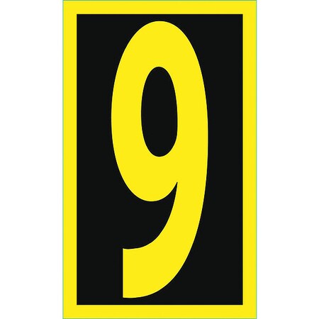 NMC National Marker Corp. HIN259 Number, 9, 2.5 Inch High Visibility Yellow Black, PS Vinyl