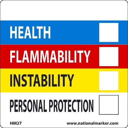 NMC HM29 Health - Flammability - Instability - Personal Protection Label - [Roll of 250] 2 in. Square PS Paper Right to Know Label