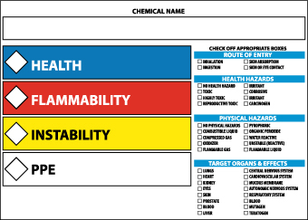 NMC HMC21P Right To Know Target Organ Label, 5" Length x 7" Height, Pressure Sensitive Vinyl, Black/Blue/Red/Yellow on White