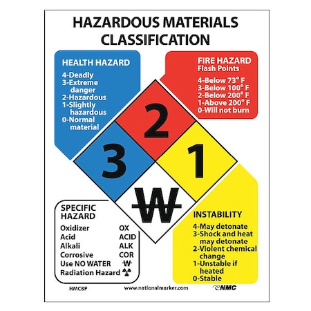 NMC HMC8P Hazardous Materials Classification Sign, 8" Length x 11" Height, Pressure Sensitive Vinyl, Black/Blue/Red/Yellow on White
