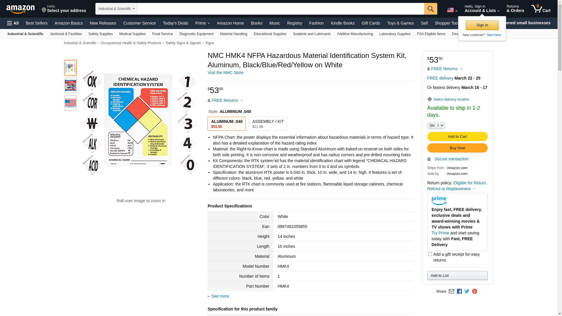 NMC HMK4 NFPA Hazardous Material Identification System Kit, Aluminum, Black/Blue/Red/Yellow on White