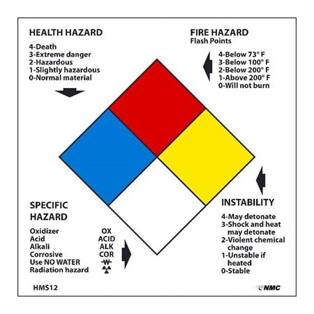 NMC HMS12L, NFPA Hazard Chemicals Label (Pack of 10 pcs)
