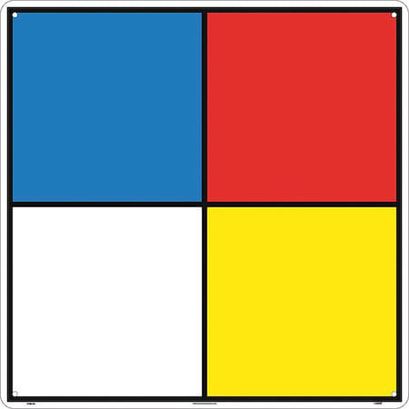 - Specifications: the square aluminum label is 15.5 in. wide and high, and 0.040 in. thick, and has red, blue, white, and yellow colors