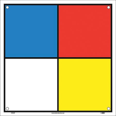 - Specifications: the square rigid plastic label is 8 in. wide and high, and 0.050 in. thick, and has red, blue, white, and yellow colors