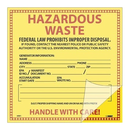NMC National Marker Corp. HW1SL25 Self Lamination Hazardous Waste Label