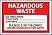 - Visibility: this hazardous material label has the legend “HAZARDOUS WASTE ACCUMULATION START DATE___ CONTENTS___ HANDLE WITH CARE! CONTAINS HAZARDOUS OR TOXIC WASTES” in bold and contrasting colors to ensure clear visibility in most lighting conditions
