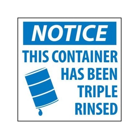 NMC - National Marker Company LABELS, NOTICE THIS CONTAINER HAS BEEN TRIPLE RINSED, 6X6, PS PAPER Hazardous Waste Container Labels Identify the contents of Hazardous Waste containers with the proper labels.