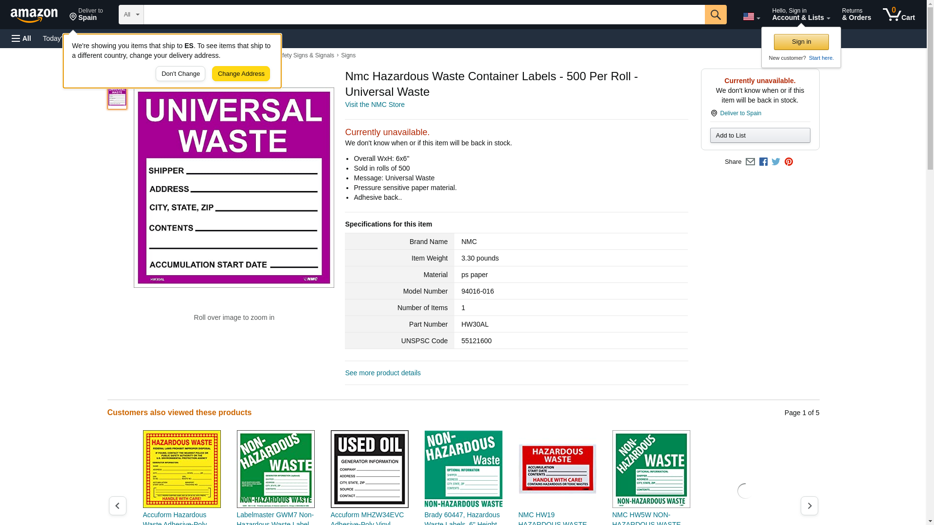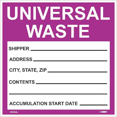 NMC - National Marker Company LABELS, HAZARDOUS MATERIALS SHIPPING, UNIVERSAL WASTE, 6X6, PS PAPER Hazardous Waste Container Labels Identify the contents of Hazardous Waste containers with the proper labels.