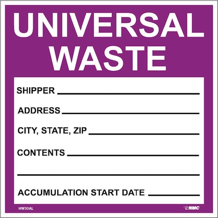 NMC National Marker Corp. HW30SL100 Self-Laminating Labels, Universal Waste in Purple, 6 Inch X 6 Inch, PS Vinyl, Bx100