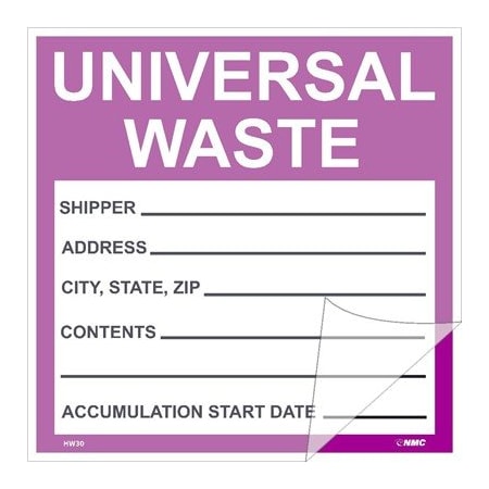NMC HW30SL25, Universal Waste Vinyl Label (6 Packs of 25 pcs)