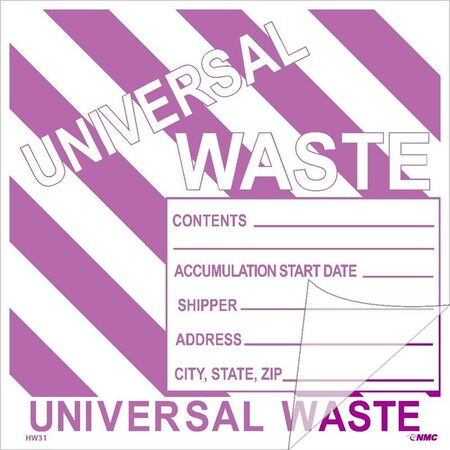 NMC National Marker Corp. HW31SL100 Self-Laminating Labels, Universal Waste W/Purple Stripes, 6 Inch X 6 Inch, PS Vinyl,Bx100