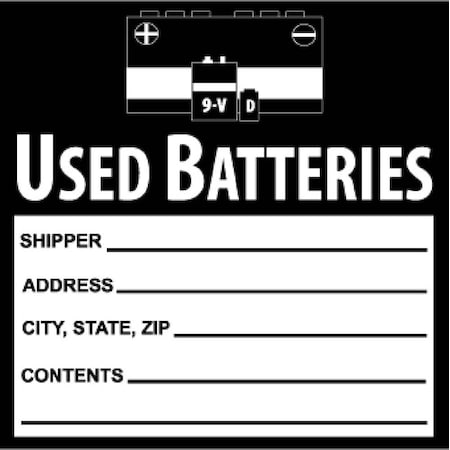 6" x 6" "Used Batteries" Self-Laminating Vinyl Label, Box of 100 pcs