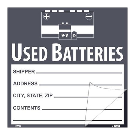 NMC National Marker Corp. HW37SL25 Self-Laminating Labels, Used Batteries, 6 Inch X 6 Inch, PS Vinyl, 25/Pk