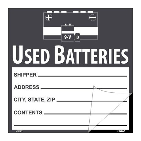 NMC National Marker Corp. HW37SL5 Self-Laminating Labels, Used Batteries, 6 Inch X 6 Inch, PS Vinyl, 5/Pk
