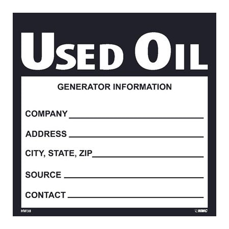 NMC - National Marker Company LABELS, USED OIL, 6X6, PS VINYL Hazardous Waste Container Labels Identify the contents of Hazardous Waste containers with the proper labels.