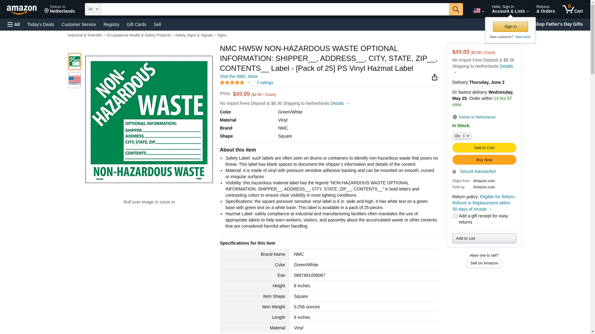 NMC Label w/Legend "Non Hazardous Waste" HW5W. ✅NMC authorized distributor ✅. ☎ (800) 884-5767 Mon-Fri 8:00 AM - 5:00 PM ET or order online 24/7