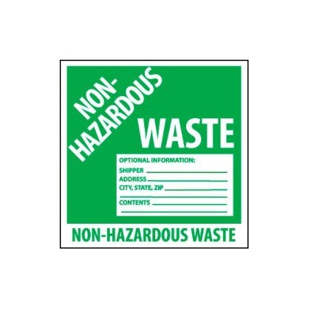 NMC - National Marker Company LABELS, NON-HAZARDOUS WASTE, 6X6, PS VINYL Hazardous Waste Container Labels Identify the contents of Hazardous Waste containers with the proper labels.