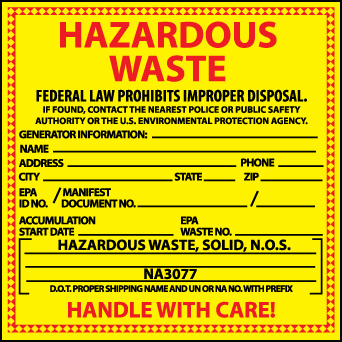 - Message: HAZARDOUS WASTE (FOR SOLIDS)