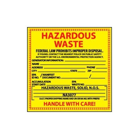 NMC - National Marker Company LABELS, HAZARDOUS WASTE (FOR SOLIDS), 6X6, PS VINYL Hazardous Waste Container Labels Identify the contents of Hazardous Waste containers with the proper labels.