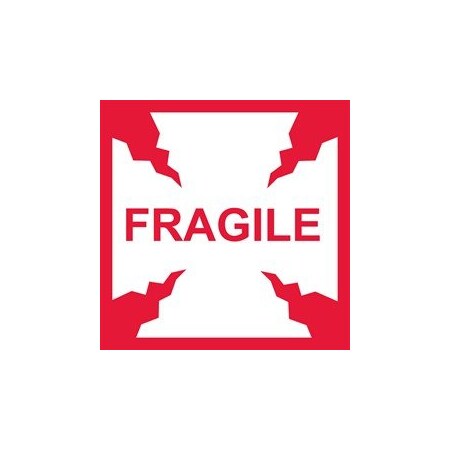 NMC Fragile IHL2AL international shipping and handling labels 4" x 4" that come 500 pressure sensitive paper labels per roll. The IHL2AL international shipping label for fragile items, from NMC, have a red and white print cracks help insure your package gets handled safely. This Product is similar to Uline S-3003