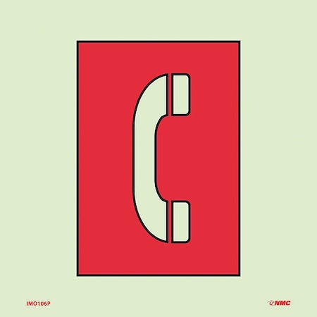 NMC IMO106P IMO Emergency Telephone Station Sign – 6 in. Square Safety Sign, 6 Hour Glow Polyester, Red on Glow Yellow with Graphic