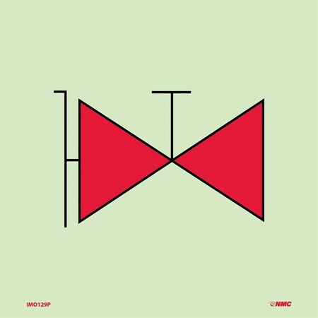 NMC IMO129P Fire Main with Fire Valves IMO Symbol, Glow Vinyl Laminated, 6" x 6", Red